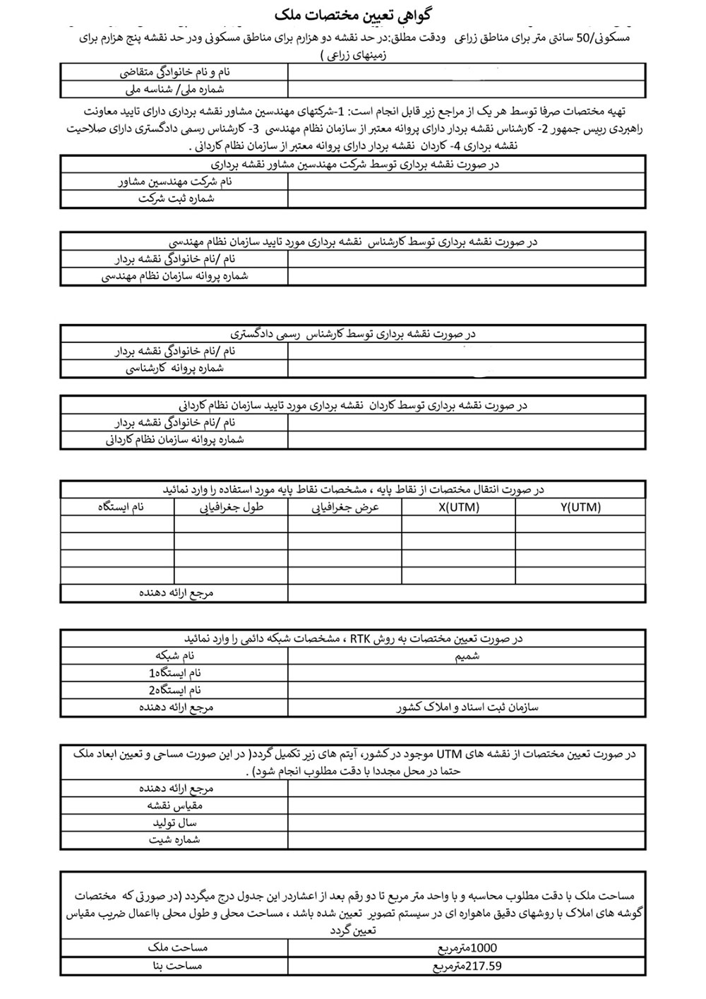 دانلود فرم گواهی تعیین مختصات ملک